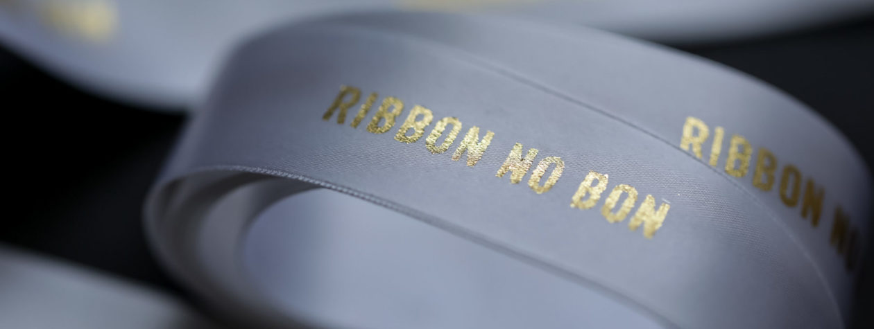 リボンのボンの箔リボンは、顔料プリントとは一線を画す、熱圧着による本物の「箔(フォイル)」を使用しています。