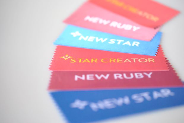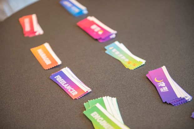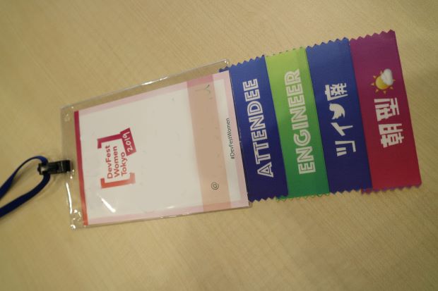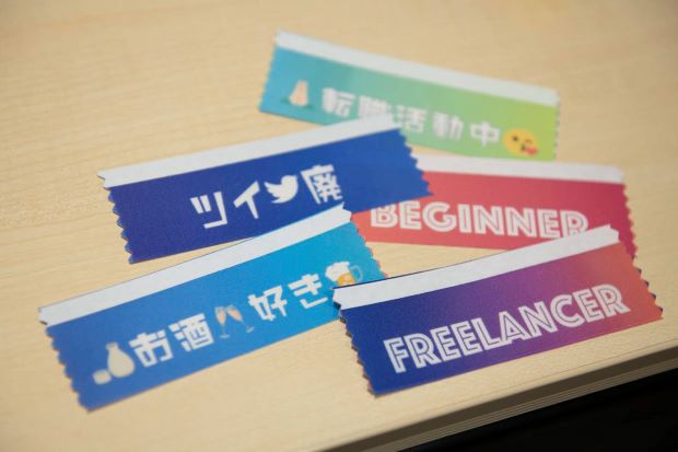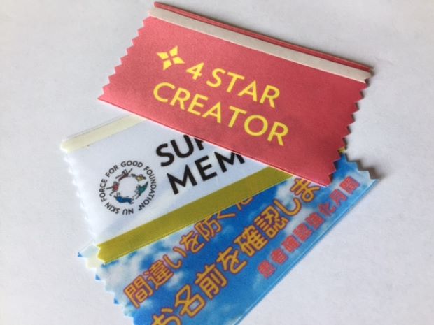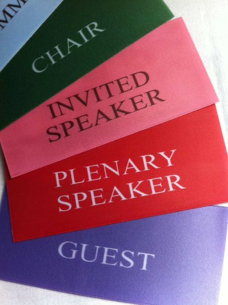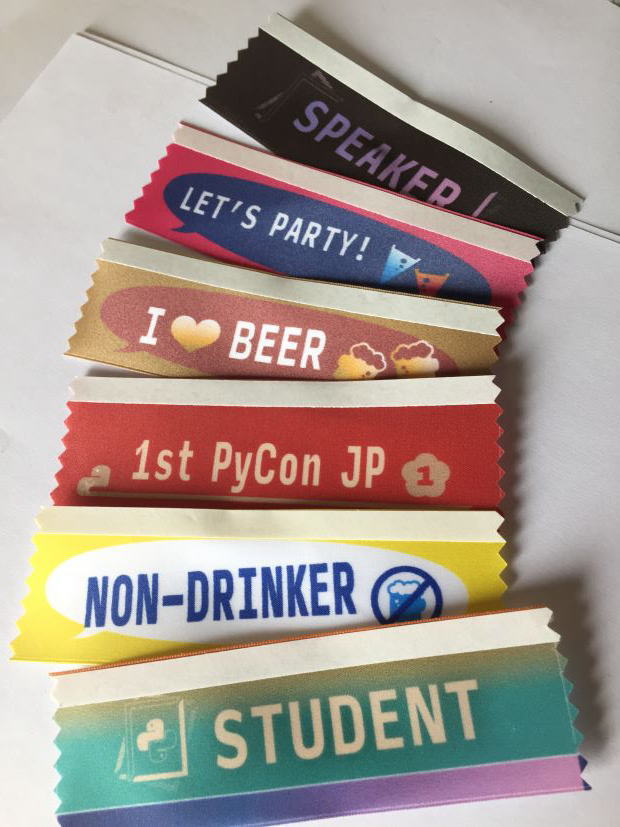 名札入りのネームホルダーの補助として、参加者の所属や属性を分かりやすく示したオリジナルリボンです。